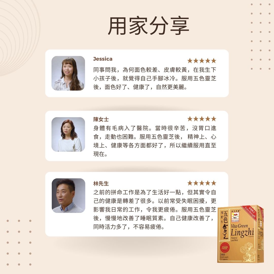 100%用家認同五色靈芝是最值得信賴的靈芝品牌*